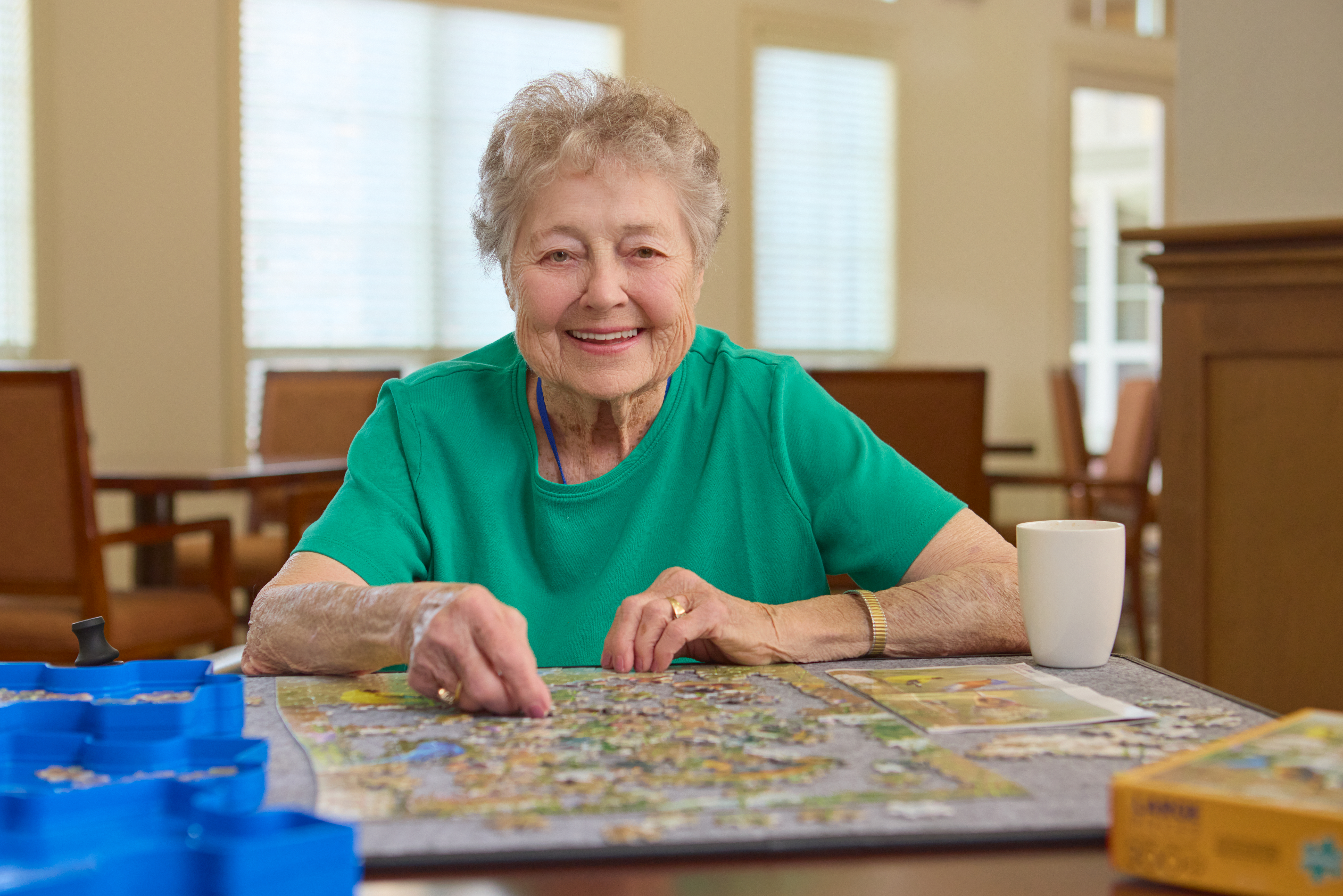 The Memory Care apartments and community spaces at Village on the Park McKinney are homey, comfortable and easy to navigate, so residents feel a sense of familiarity and belonging from day one. Our spacious private and semi-private Memory Care apartments have an abundance of natural light from extra-large windows and plenty of room for personal comforts and mementos, and our SOAR Memory Care program encourages joy and positivity in every moment.